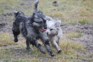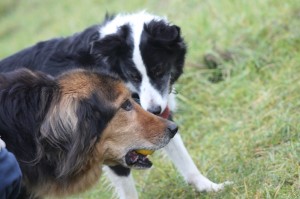 …doch letzten Endes siegt die Weisheit des Alters und Digger ergattert den Ball – Bonny kann´s kaum glauben