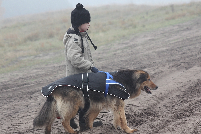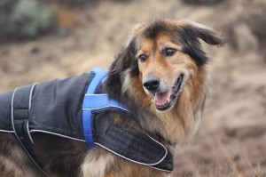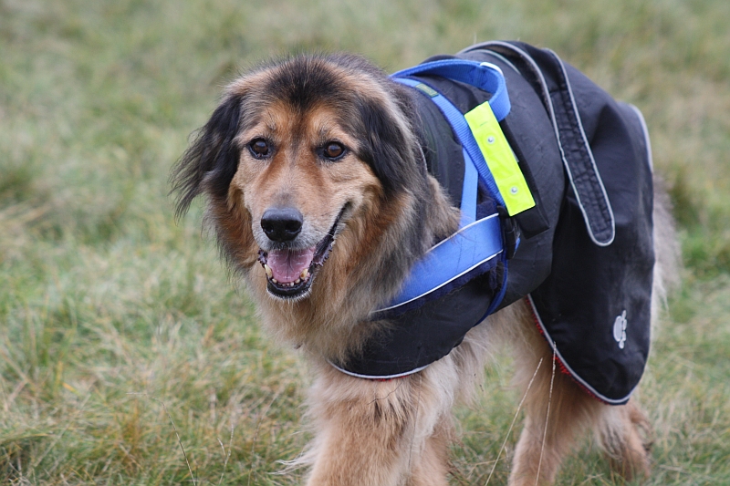 Digger – zum Glück noch immer mit dabei. Hoffentlich begleitet er uns noch eine Weile! Zum Schutz gegen Kälte und Feuchtigkeit trägt er eine Decke, das tut ihm gut!