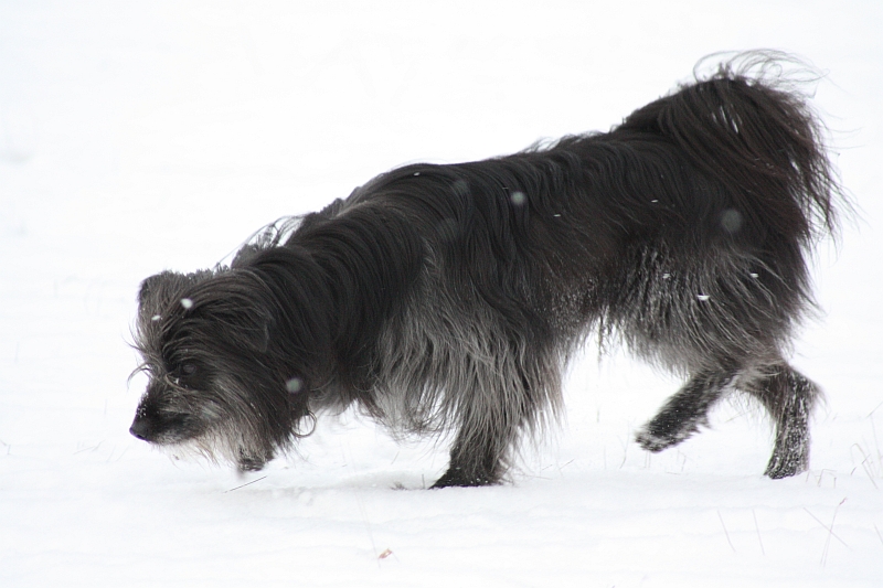 Frodo riecht was Spannendes im Schnee – Eisbein vielleicht? 😉