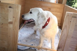 Scully ist deutlich unruhig, ihre Körpertemperatur war über Nacht gesunken und ist am Morgen wieder angestiegen, sie hechelt viel und duldet die anderen Hunde nicht allzu dicht neben sich – alles Anzeichen, dass die Geburt der Welpen wahrscheinlich nicht mehr lange auf sich warten lassen wird. Im Garten buddelt sie fleißig Wurfhöhlen, in denen sie es sich dann gemütlich macht – ein natürliches Instinktverhalten, dass den Geburtsverlauf in Gang hält. Wir sind sehr gespannt, was die nächsten Stunden bringen werden!