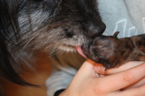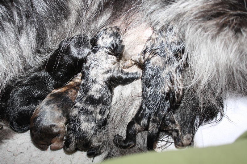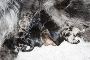 Gestern Abend war es soweit: Bletta brachte – wie immer völlig unkompliziert – zwei Rüden und drei Hündinnen zur Welt. Uns blieb nur zuschauen und staunen…