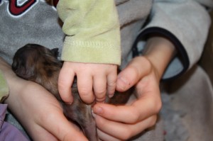 streng kontrolliert von Bletta darf Laurin Welpen kuscheln