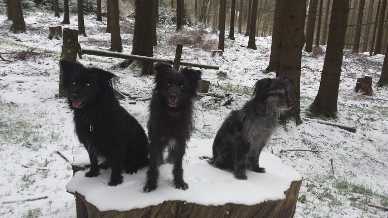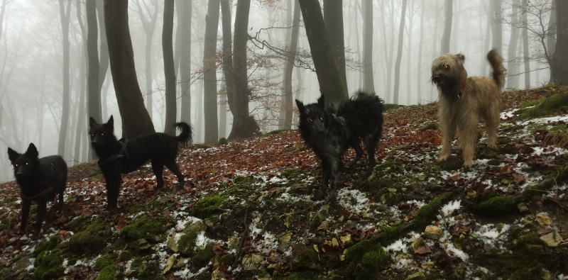 mimiZum Jahresabschluss 2014 haben wir noch ausgiebige Spaziergänge mit unseren Freunden genossen (Mimi)wii_hopsiCeleborn du Mourioche „Kju“, Luthien du Val du Vent Dore „Lulu“  und Bletta de KliandiewaldEdina vom Schloss Feengrund „Eddie“, Köves Berci Betyar Gimmick, Köves Berci Betyar Imola „Mimi“, Mon Gentil Ami Jule