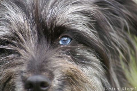 zudem noch ein blaues Auge, was bei allen gemerlten Hunden vorkommen