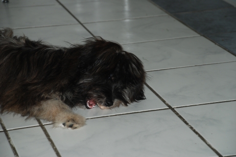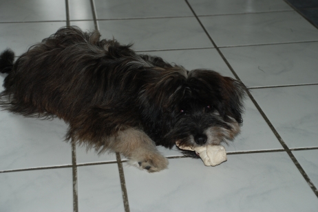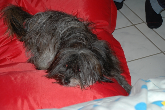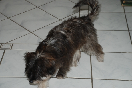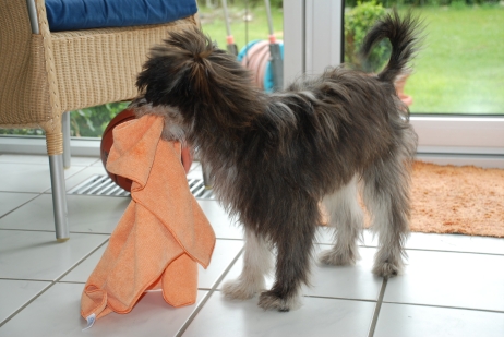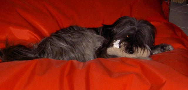 31. Mai 2009 Genau drei Wochen ist es nun her, daß Bletta und Kresken ihr erstes inniges Rendez-vous hatten. Das erste Drittel der Tragezeit ist wie im Flug vergangen, Bletta läßt sich kaum etwas anmerken. Doch pünktlich wie im Lehrbuch zeigt sich heute bei ihr ein glasiger Ausfluß, ein Zeichen, daß die Nidation (Einnistung) der Zwerge erfolgreich abgeschlossen ist. Dieser sogenannte Trächtigkeitsausfluß ist das einzige Merkmal, welches nur bei wirklich tragenden Hunden vorkommt, niemals in einer Scheinträchtigkeit. Wir hoffen also sehr, daß wir guter Hoffnung sind und die nächsten Wochen genauso unkompliziert verlaufen wie bei Blettas A-Wurf. |