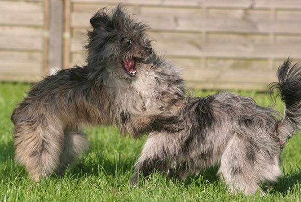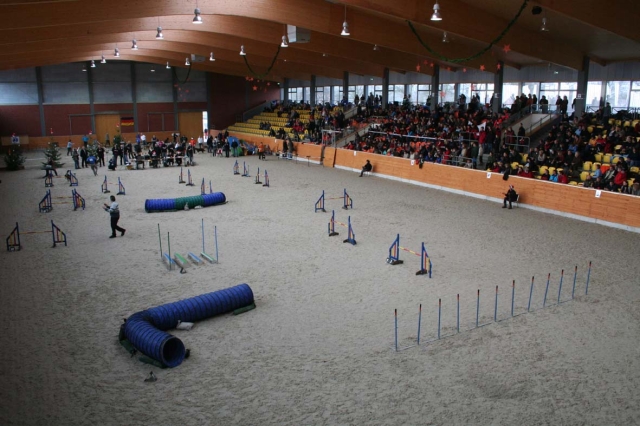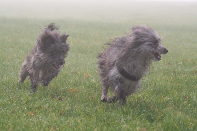 Dezember 2008 Der Dezember hat's in sich - der Nikolaus kommt, Knecht Ruprecht bleibt hoffentlich zu Hause, der Weihnachtsmann steht auch schon in der Warteschleife - und die alljährliche Deutsche Meisterschaft im Agility, ausgerichtet vom VDH, findet statt. Über 200 Teams aus ganz Deutschland, die sich im Laufe des Jahres qualifizieren mußten, reisten ins schöne Ostfriesland nach Großefehn nahe Aurich. Gastgeber waren die Legmoor-Jumpers des Club für britische Hütehunde, die den Teilnehmern unschlagbare Rahmenbedingungen für eine tolle Veranstaltung boten. Die Richter Ernst Schauwecker und Rolf Franck stellten kniffelige Parcoure, die einer deutschen Meisterschaft absolut angemessen waren. Und was soll ich sagen - Bletta und ich waren auch dabei! Als erste und bisher einzige Teilnehmer der VDH-DM, die für den Club Berger des Pyrénées starteten, bekamen wir im Vorfeld viele gute Wünsche vom Club - leider hat alles Daumendrücken nicht geholfen. Am Samstag war uns das Glück nicht hold und trotz schöner Läufe reichte es doch nur für zwei Disqualifikationen. So kann's gehen in einem Sport, in dem hundertstel Sekunden über Sieg und Niederlage entscheiden und die Hunde bis zu fünf Metern pro Sekunde und mehr zurücklegen.Trotzdem hatten wir ein wirklich schönes Wochenende, alte Bekanntschaften wurden erneuert, neue geschlossen und für mich natürlich ein besonderes Highlight: Asea und M (Arda) waren auch da! Nach dem Motto "Learning by looking" schauten sie sich ganz gespannt die Läufe an. Und ganz nebenbei machten sie durch ihr offenes und aufgeschlossenes Wesen auch noch fleißig Werbung für unsere Rasse. Wenn die beiden über die Wiese toben, sind sie echte Hingucker... Videos von Blettas Läufen auf der DM und beim offenen Turnier am nächsten Tag finden Sie hier. |