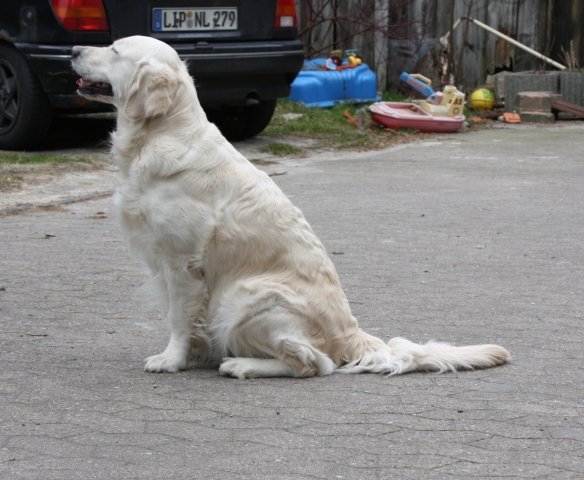 23. Januar 2009Dienstag und Mittwoch war Scully zum Decken bei Familie Rabeler und Paratrooper. Nach viel Aufregung um die Bestimmung des Decktermins und zeitweise verlorengegangenen Bluttests im Labor ist alles glücklich gelaufen. Trooper und Scully haben sich gut verstanden und waren ein glückliches Liebespaar. Wir drücken die Daumen, dass wir guter Hoffnung sind.Errechneter Wurftermin ist der 24. März 2009. Wir versprechen uns aus dieser Paarung gesunde und wesensfeste Golden-Retriever-Welpen. Den spannenden Tagen der Aufzucht und der Prägespiele fiebern wir schon entgegen. Mehr Informationen gibt es dann auf der Welpenseite ;-) |