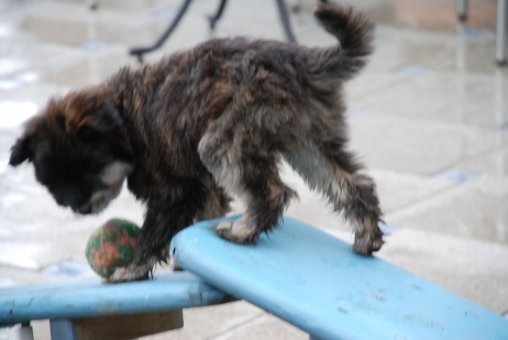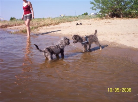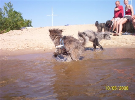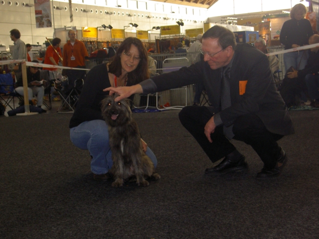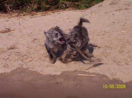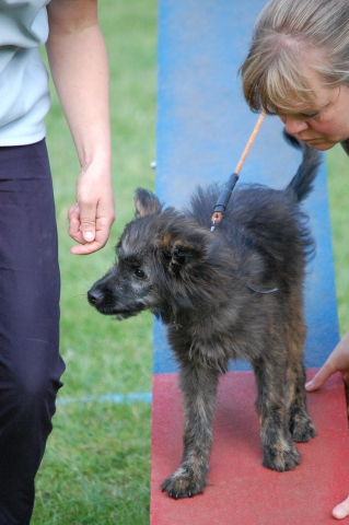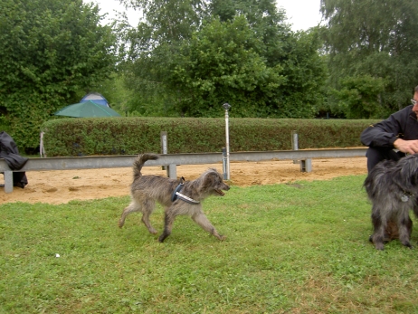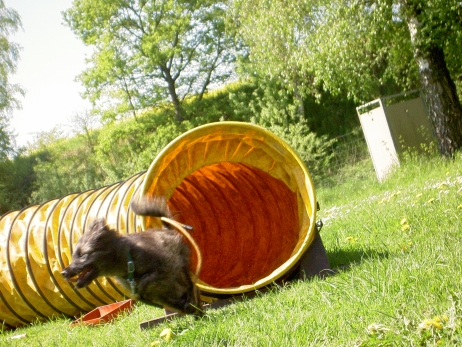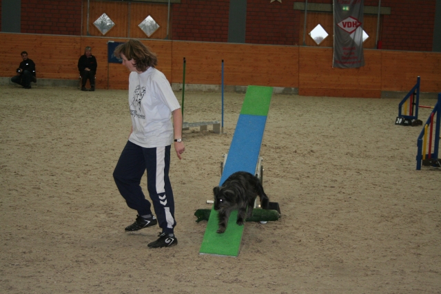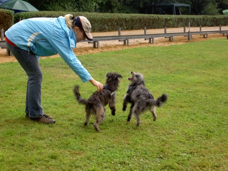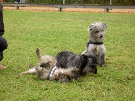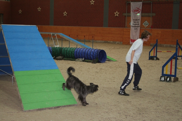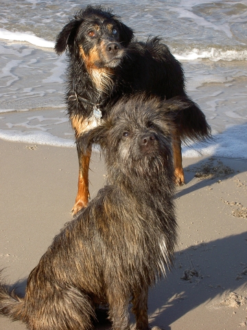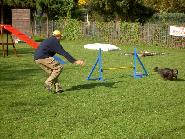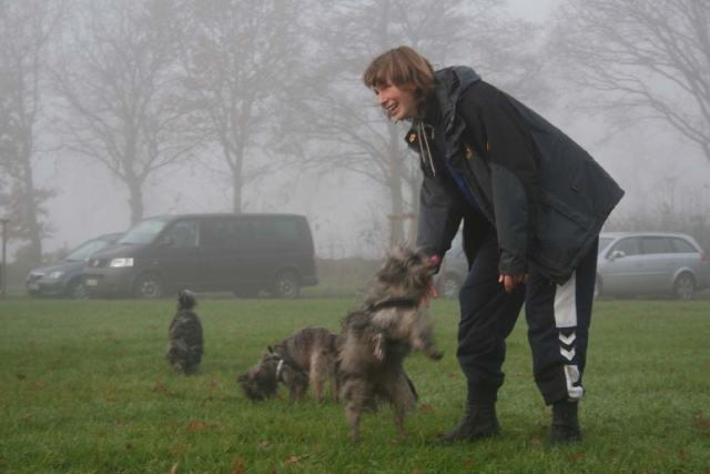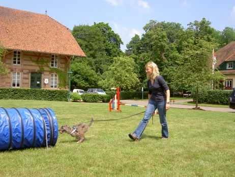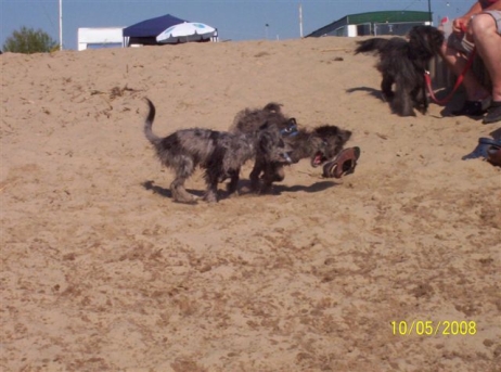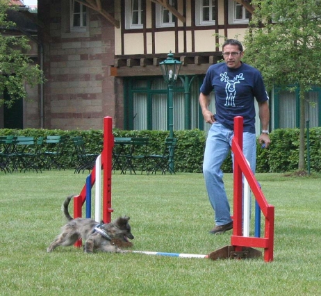 20. Oktober 2008 Los geht's! Das cbp Agility-Team Lage hat sein erstes Training absolviert. Dank des Besuches von Jan und Wiebke, die extra aus dem fernen Münsterland angereist sind, war sogar eine stattliche Anzahl Berger des Pyrénées vertreten! Das Training der Fortgeschrittenenguppe findet freitags von 15-18 Uhr auf dem Übungsplatz des cbp an der Bielefelder Straße 102 in Lage/Wissentrup statt und ist nur für Clubmitglieder offen. Betreut werden Hunde aller Rassen und Mischlinge. Anfänger - auch ohne Vereinszugehörigkeit - haben die Möglichkeit, an den Kursen der Hundeschule, die auf dem gleichen Platz agiert, teilzunehmen. cbp-Mitglieder erhalten hier ermäßigte Preise. Sollten Sie sich für ein Angebot aus der breiten Palette Agility, Welpen/Junghundeausbildung, Unterordnung oder Mobility interessieren, melden Sie sich bitte bei mir.voller Einsatz Damit nicht genug: Außer auf Hundeplätzen tummeln wir uns ja auch ganz gerne mal auf Ausstellungen, im Herbst ist natürlich die Bundessiegerzuchtschau in Dortmund das absolute Highlight, aber auch Rostock lockte dieses Jahr - hier war zum ersten Mal eine Sonderschau des cbp angegliedert. Also erst mal ab nach Rostock und was soll ich sagen? Die Reise hat sich gelohnt! Für einen Tagesausflug ist der Weg zu weit, also wurde ein Kurzurlaub eingeplant und als besonderes Bonbon konnte ich Katrin und Gerd davon überzeugen, Tamy (Anor) auch auszustellen. Nach zwei herrlichen Tagen am Strand mit stundenlangen Spaziergängen, die besonders Scully total genossen hat, war dann am Sonntag Ausstellung angesagt. Premiere für Tamy und Katrin! Ehrlich gesagt, war ich bestimmt aufgeregter als alle anderen zusammen. Wird alles klappen? Hoffentlich hüpft Tamy nicht wie ein Flummie! Läßt er die Zähne kontrollieren? Aber natürlich war alle meine Aufregung umsonst, die beiden haben ihre Sache super gemacht. Tamy hat eine tolle Beurteilung bekommen: "8 Monate alter grau-fauve z. Zt. Mittellanghaar-Rüde, muss sich noch in seine Proportionen finden. Z. Zt. ist alles eher schmal und lang. Jetzt schon sind als definitiv positiv zu erkennen: das komplette Pigment, vor allem Augenpigment und Stehkippohr (Dachohr). Im Moment noch viel Luft unterm Bauch und vorne und hinten im Stand etwas z. Zt. zu sehr ausgedreht. Fließender Trab. Freundlich, aufmerksam, zeigt sich schon sehr gut. Formwertnote Vielversprechend, Platz 1." Blettas Beurteilungen finden Sie unter "Ausstellungen". Da