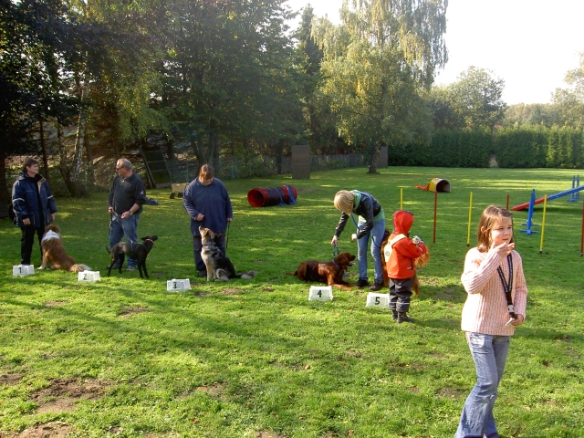 3. Oktober 2008 Es tut sich was in Lage: Dank der Unterstützung des cbp konnten Dina, Petra und ich einen neuen Hundeplatz mit den Angeboten Agility, Welpenstunden, Unterordnung und - für die älteren Hunde - Mobility eröffnen. Heute präsentierten wir uns anläßlich der Eröffnung mit einem Tag der offenen Tür. Circa 80 Besucher, davon etliche Berger-Besitzer, fanden sich ein, um einen schönen Tag mit ihren Hunden zu verbringen. Vorführungen in Agility und Unterordnung, Mitmach-Aktionen wie Agility zum Ausprobieren, Hunderennen, Wahl des schönsten Hundes und eine Hunderallye begeisterten alle. Besonderes Highlight war die Tombola mit jeder Menge toller Preise. Ab dem 16.10. bieten wir unsere Kurse an und hoffen auf rege Beteiligung.Auch wenn es im Vorfeld ganz schön anstrengend war: Die Aufregung hat sich gelohnt, die Eröffnung war ein voller Erfolg. |