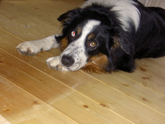 1. März 2009 Rico ist vermittelt!Donnerstag darf er in sein neues Zuhause umziehen! Mein Dank gilt allen, die mir bei der Suche nach geeigneten Menschen für Rico geholfen haben. Und ganz besonders freue ich mich natürlich,daß sich eine sehr nette und hundeerfahrene Familie gefunden hat, die Rico eine neue Heimat geben möchte. Er hat es wirklich verdient! Und wer sich über die Hintergrundstäube auf den Rico-Bildern von oben wundert: Wir bauen eine neue Wurfkiste, Retriever-Größe. Laurin war mit vollem Einsatz dabei, zusätzlich zur Wurfkiste verlangt er die Konstruktion von Ritterburg mit Fähnchen für den Welpen, dem er den Namen Penny zugedacht hat. Bis die Ritterburg fertig ist, wird der Name wohl noch wechseln. Die ganze Familie wurde natürlich eingebunden, hier schraubt Silke an der 2. Seitenwand. Nur Scully betrachtete das ganze eher gelassen... |