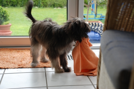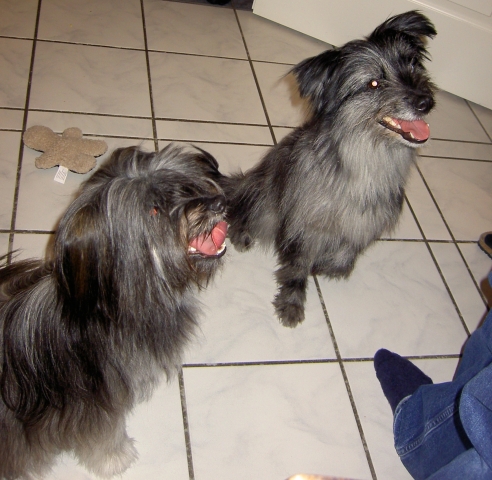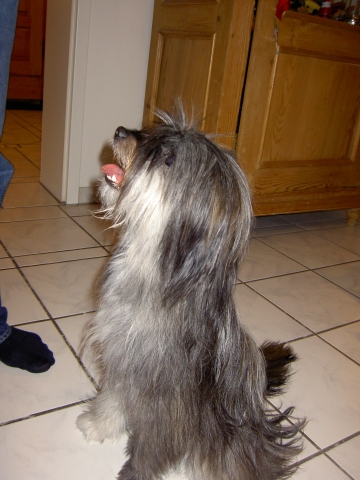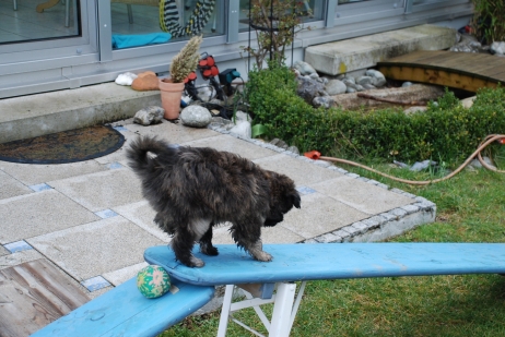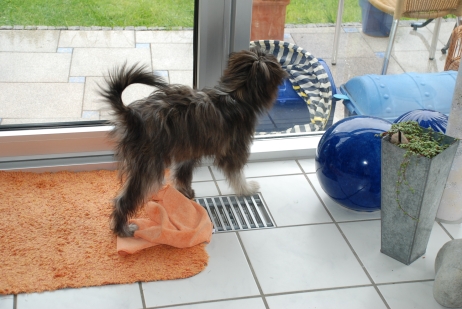 Dezember 2008/Januar 2009 Pünktlich zu Weihnachten bekam ich aktuelle Fotos von den Welpen, die keine mehr sind. Mit 11 Monaten sind es schon echte "Halbstarke", für jeden Spaß zu haben, aber gelegentlich durchaus mit eigenen Vorstellungen der Freizeitgestaltung... Patty (Aldea), die junge Münchenerin - gar nicht auf blau-weiß, aber rot steht ihr ja auch viel besser. Ob das wohl der Weihnachtsmann gebracht hat? Wie hat das denn nur durch den Kamin gepaßt??? Wie man deutlich sieht - der Berger hat eine helle und eine dunkle Seite. Nicht nur äußerlich! Aber wer kann da schon widerstehen? Jetzt ist genug fotografiert, ist ja echt langweilig hier! Weiß doch jeder, daß ich die Schönste bin, oder??? ![]() ![]() Die Unterschiede zwischen einem lang- und einem kurzhaarigen Hund? Der langhaarige bringt von Spaziergängen gerne Souvenirs mit nach Hause! Wenn schon mal Schnee liegt, muß man das ja ausnutzen... In der trockenen (und beheizten!) Reithalle ist von Schnee aber keine Rede, da gibt's nur Agility. Learning by looking sozusagen. ![]() ![]() Nur gucken ist aber auch doof, zwischendurch ein bißchen toben muß auch sein. Auch wenn die Mama grimmig guckt - Bletta hat es aber wirklich nicht leicht mit ihrer pubertierenden Bande! ![]() ![]() Haaaallooooo!!!!! Nicht den Menschen den Matsch bis auf die Brille spritzen!!! ![]() ![]() Ach, diese Kinder! Können sich keine zwei Minuten zusammen reißen... ![]() In dieser großen und hellen Halle fand die Agility VDH Deutsche Meisterschaft 2009 statt. Die Bedingungen waren ideal! ![]() ![]() Also - an den Kontaktzonen hat es jedenfalls nicht gelegen! ![]() Immerhin: Ein Andenken durften auch wir mit nach Hause nehmen... ![]() Asea im Schnee. ![]() ![]() Hallo, Herrchen, man kann auch im Schnee Bällchen spielen! ![]() Will denn keiner mitspielen????? |