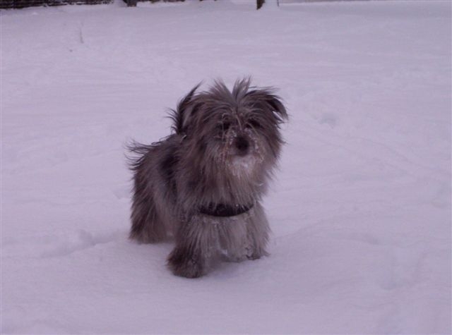15. Februar 2009 Letzten Freitag war Scully bei Dr. Nieder zum Ultraschall: Voila, sie ist trächtig. Die genaue Anzahl der Welpen ist zu diesem Zeitpunkt natürlich noch nicht erkennbar; das Foto zum Ultraschall liefern wir noch nach.Mit Agility ist es erst mal vorbei, Scully... ... stattdessen Schneespaziergänge und Kuschelrunden (naja, Bonnys Körbchen ist dir vielleicht doch zu klein???) |