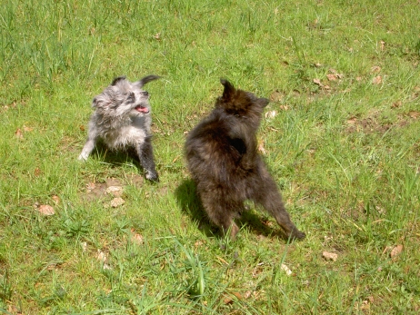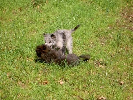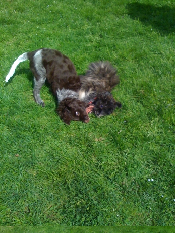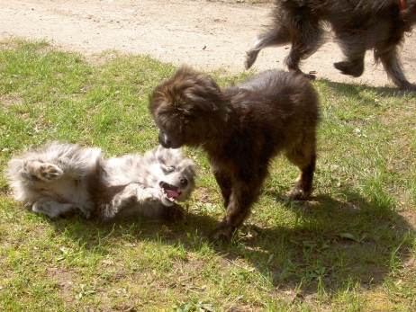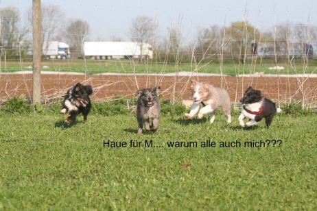Rückblende Im September trafen sich zum ersten Mal seit ihrem Umzug in ihre neuen Familien Anor (Tamy), Arda (M) und Asea wieder. Anlaß war die dhv-DM in Bielefeld. Auf dem schönen Gelände des Hof Steffen steht ein eingezäunter Platz zur Verfügung. Da war klar - alle drei kleinen Teufel rein und ab geht die Luzie! M und Asea treffen sich ja des öfteren auf Turnieren und spielen dann immer sehr ausgiebig, aber auch Tamy wollte nicht hintenanstehen und zeigte seinen Schwestern, daß so ein echter Mann im Haus auch was wert ist. Claudia hat wie immer tolle Fotos gemacht, von denen sie mir einige zur Verfügung gestellt hat - vielen Dank dafür!![]() ![]() ![]() ![]() ![]() ![]() ![]() ![]() |