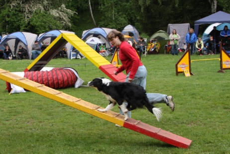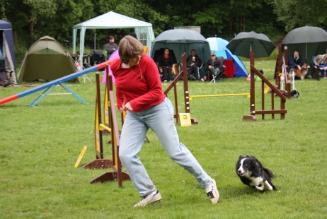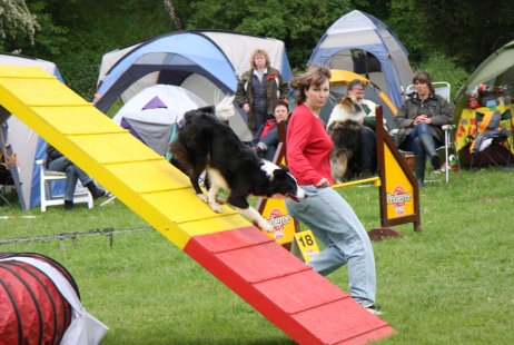 21. Mai 2009 Bletta wird vermißt! Nein, nein, sie ist natürlich glücklich, gesund und wohlbehütet bei uns, aber ich habe in den letzten Tagen einige Agility-Turniere nur mit Bonny besucht. Auf die Frage, wo denn Bletta sei, antworte ich mit schöner Regelmäßigkeit, daß sie nach fünf Tagen mit wildem hemmungslosen Sex erst mal eine Pause braucht. Es ist schon bemerkenswert, wie schnell aus den Nachbarzelten riesengroße Ohren wachsen und man ungeteilte Aufmerksamkeit genießt... Bletta ist zur Zeit deutlich wachsamer als sonst - dieses Verhalten hat sie bei ihrer ersten Trächtigkeit auch gezeigt. Wir sind also sehr hoffnungsvoll, daß alles geklappt hat und wir Mitte Juli Welpen bekommen werden. ![]() ![]() ![]() |