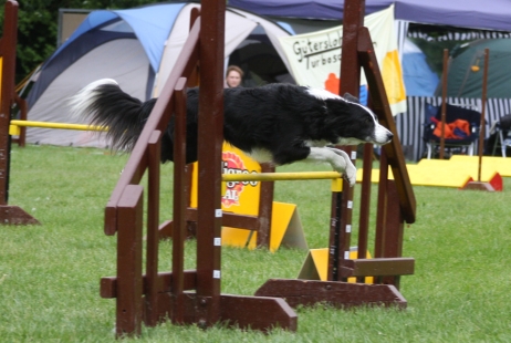 30.06.2008 Alljährlich findet im Juni die Clubschau des cbp statt, in diesem Jahr zum dritten Mal auf dem wunderschönen Gelände des Linslerhofes in Überherrn/Saarland. Welch ein Glück - wohnt doch "das M" (Arda) gleich um die Ecke. Und tatsächlich haben Jörg und Claudia den unglaublich weiten Weg von immerhin ca. 20 Minuten auf sich genommen und ich konnte "M" endlich "in echt" bewundern. Na ja, wenn sie denn mal 5 Sekunden still gehalten hat, heißt das. Die meiste Zeit habe ich sie nur im Tiefflug vorbeisausen sehen... Gerne im Team mit Bletta, die sich von dem jungen Gemüse ja nichts vormachen läßt. "M" hat mich mit ihrem Temperament völlig begeistert, ein bißchen was von einer Bodenlenkrakete ist an ihr verloren gegangen. Aber Jörg hatte ja "was Kerniges" bestellt - die beiden passen wirklich gut zusammen und ich bin mir sicher, daß die anderen Hunde im Haushalt nichts zu lachen haben...Bletta ist in der offenen Klasse der Hündinnen von ca. 22 Teilnehmern unter die besten sieben gekommen - ganz toll, wenn man bedenkt, daß sie nach dem Wurf noch ziemlich abgehaart ist und sich außerdem am Freitag, als wir gerade losfahren wollten, an einer Kralle verletzt hat. Scully hat uns begleitet und alle durch ihre Souveranität begeistert. Ein bißchen Agility durfte sie mit Carsten zum Zeitvertreib auch machen, aber schön gemeinsam auf der Wiese kuscheln fand sie viel toller. Ein wirklich ausgeglichener, in sich ruhender Hund und ein echter Glücksgriff für Carsten. Vielen Dank an Claudia, die meisten der nun folgenden Fotos sind von ihr. ![]() ![]() ![]() ![]() ![]() ![]() Im Mai fand in Lage ein Turnier statt, dort entstanden die folgenden Bilder. ![]() ![]() ![]() ![]() ![]() ![]() ![]() ![]() ![]() ![]() ![]() ![]() ![]() ![]() Und neue Fotos von Aldea, jetzt "Patty". Sie hat in München ihre neue Familie fest im Griff. Wer kann diesem Blick schon widerstehen?? Ein ganz besonderes "Danke schön" geht an Familie Duin für die tollen Fotos! Immerhin ein kleiner Trost dafür, daß Patty soooo weit weg wohnt... |
