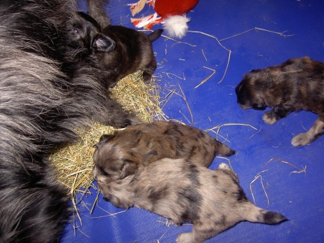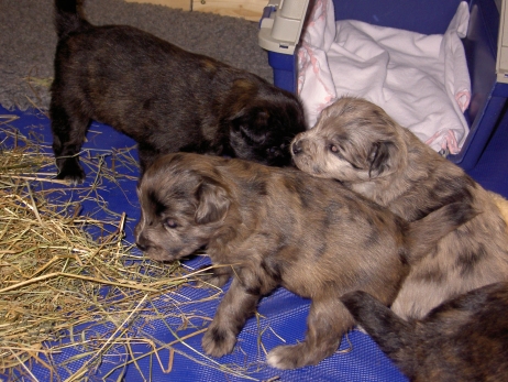 Heute auf dem Programm: Wandertag. Raus aus der Hütte... rein ins Heu. Hallo, Welt da draussen: Kannst du erahnen, wie treu ich gucken werde, wenn ich erst mal gross bin? Und dann noch ein Gruppenfoto mit halber Dame... Mittagsruhe. Aldea in der Traumwelt. Arda und Asea kuscheln. Kampfkuscheln. Voll entspannend. Und weiterwandern... Wir wollen raus... Und toooooooooben. Tschüß! Hier gibt es noch das obligatorische Wandertagvideo: NEU -> Wandertagvideo |