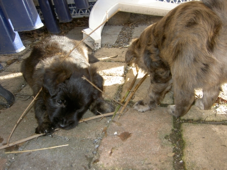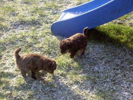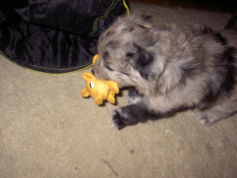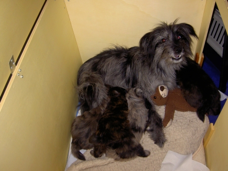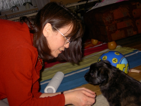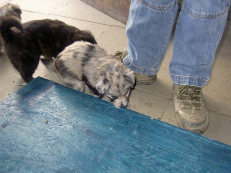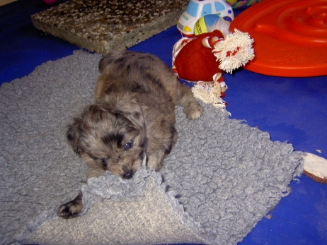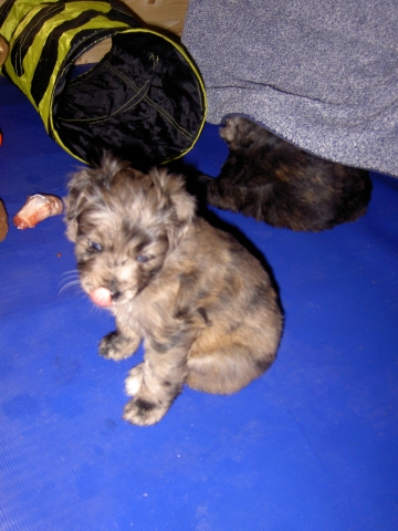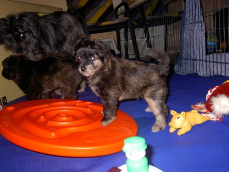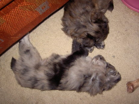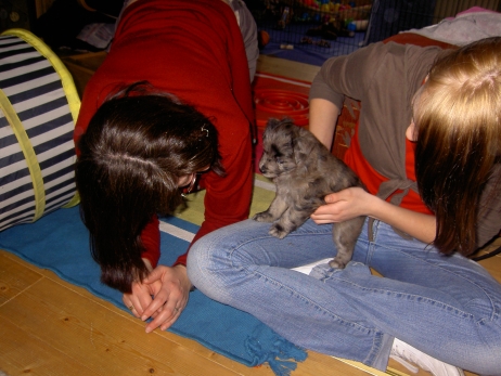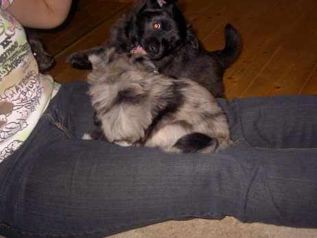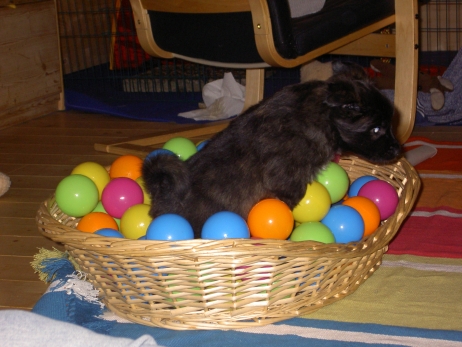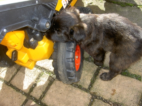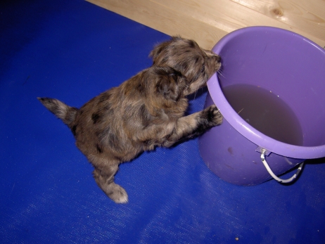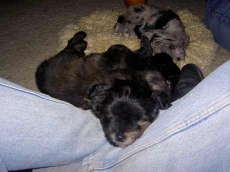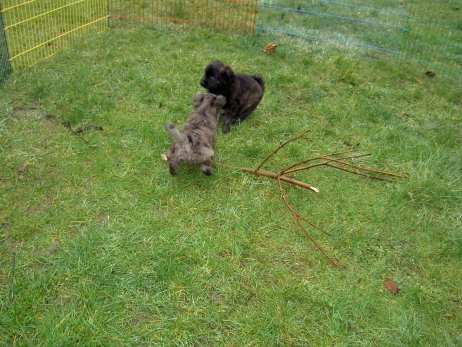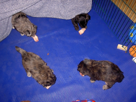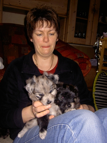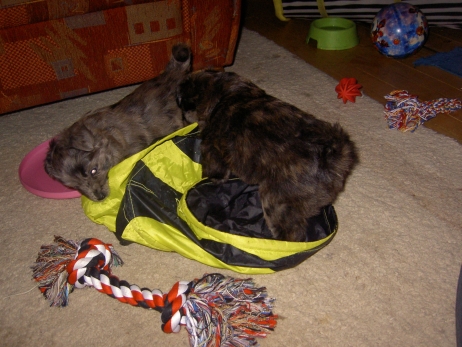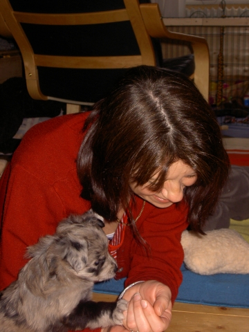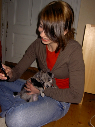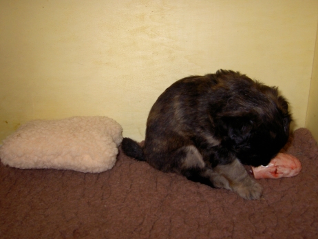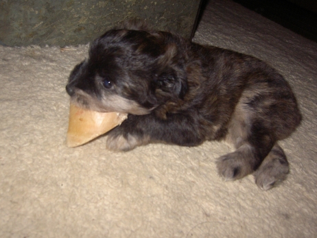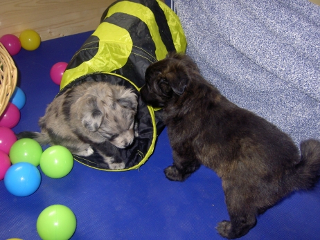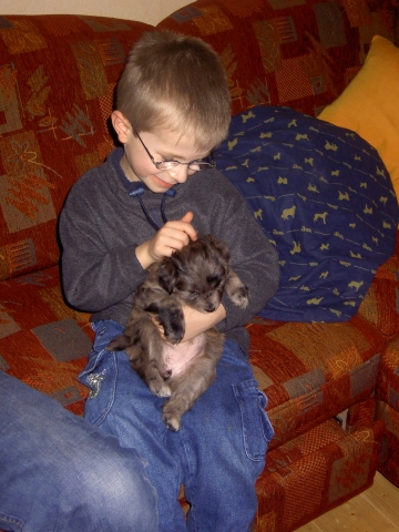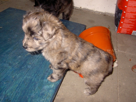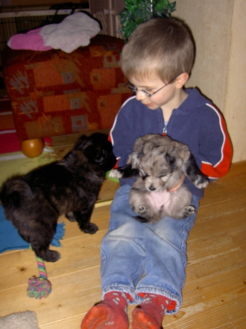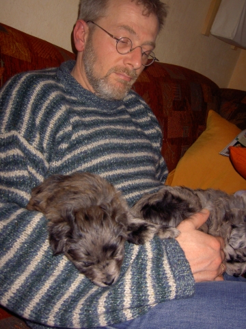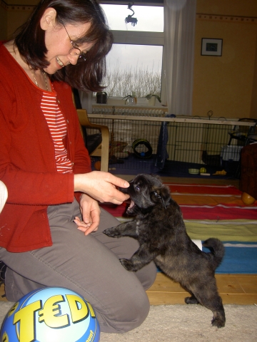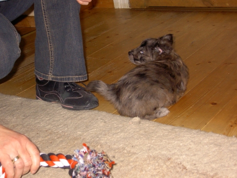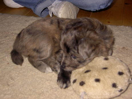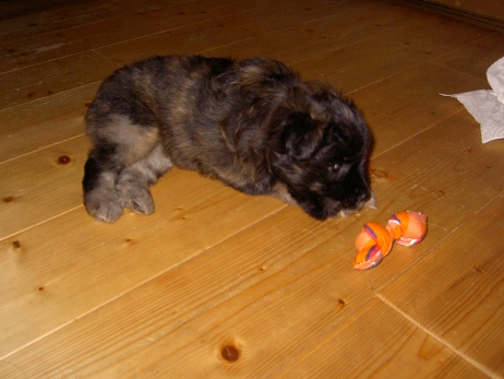 Weggedämmert. Die auch. Aber morgens sind sie wieder fit. Zum Leidwesen von Floyd. Nichts ist sicher, nicht mal Pascals Schuhe. Alles muss erforscht werden. Floyd ist weiterhin etwas zurückhaltend gegenüber Anor. So junge Hunde sind ihm neu. Zwischenmahlzeit und weiter geht's. Kau... Beiss... Und was ist das? Ok, das muss reichen für heute. Noch einmal durchs Kinderzimmer toben.. ... und ab ins Bett (nach der täglichen Dosis Milch natürlich). Gute Nacht! |