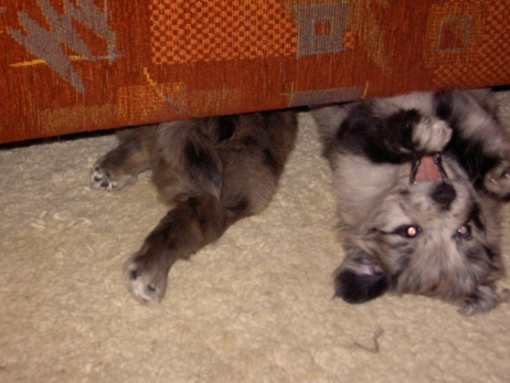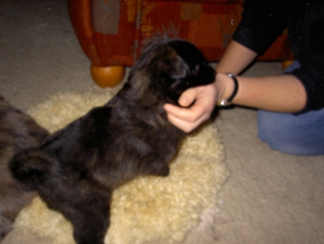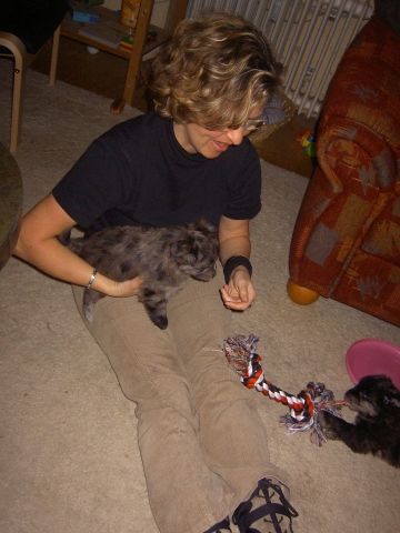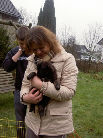 Hallo Arda! Lange nicht gesehen! Eine Kurzhaarfrisur hätte jetzt echte Vorteile. Kuckuck, wer ist denn da? Daaaa ist ja der Anor! Hier die Beweisfotos: Noch nicht einmal Gerd kann dem Charme der Kleinen auf Dauer widerstehen... Such mich doch! Aldea bevorzugt den Platz im Rampenlicht. Anor - bissig! Da muß wohl ein Maulkorb her... Asea läßt sich derweil von allen Seiten fotografieren. Jetzt legt er sich gleich mit dem Chef persönlich an! Da ist Aldea klüger - mit jungen Damen läßt sich's gut kuscheln. Anor ist ja lernfähig - bei Mama Katrin ist es sicher! Ey, Arda - zieh mir nicht am Schwänzchen! Pöh, dann eben nicht! Das Geheimnis der Punkte ist gelüftet: Laurin malt sie Abends vorm Schlafengehen sorgfältig nach. Mit streichelfester Farbe natürlich... Keine Sorge, die neuen Familien bekommen natürlich einen Topf Farbe mit! |