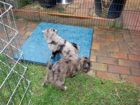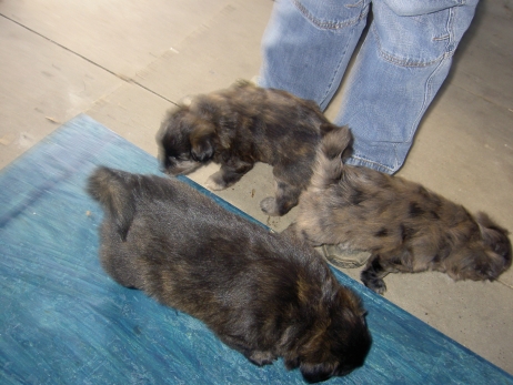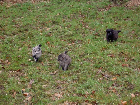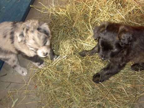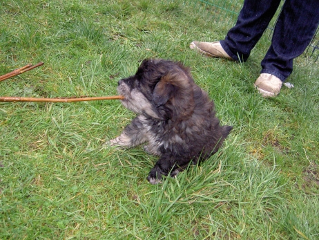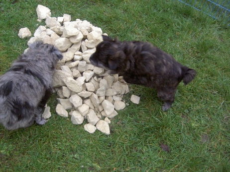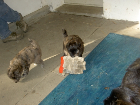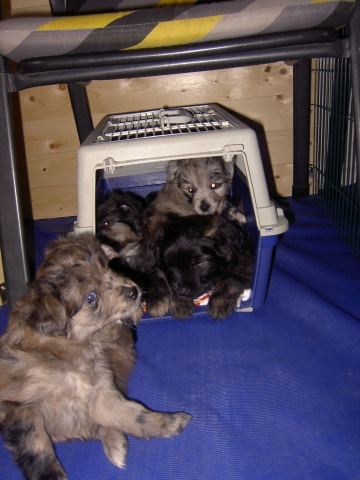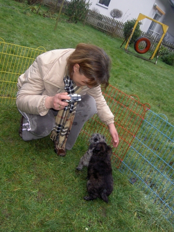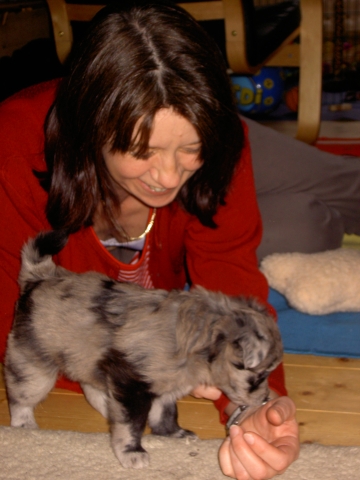 Arda hilft bei der täglichen Reinigung des Auslaufes. Aber so ein leckerer Petra-Arm schmeckt doch deutlich besser! Seht ihr auch alle, wie hübsch ich bin??? Aldea braucht keine Bestätigung - sie schöpft lieber Kraft für neue Taten. Gar nicht so einfach, die Rasselbande für's Foto zu bändigen. Laurin hat da gerade mehr Routine. mmmmmh, lecker. Die ersten frischen Lammknochen! Noch hat jeder einen. Aber Aldea bringt ihren schnell in Sicherheit und mopst dann Anors auch noch. Arda gibt ihren nicht her und Asea hat sich klugerweise versteckt. Gut getarnt! Das war lecker - mehr davon! Und hier sind für die hartgesottenen Fans der süssen 4 noch ein paar Videos: Video 1 Video 2 Video 3 Video 4 Video 5 Video 6 |