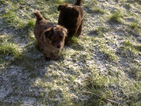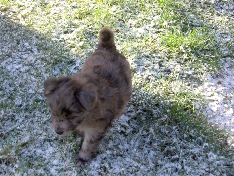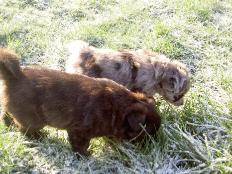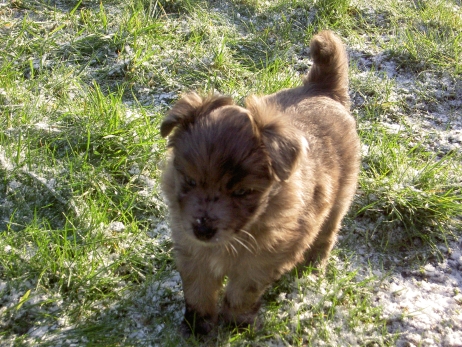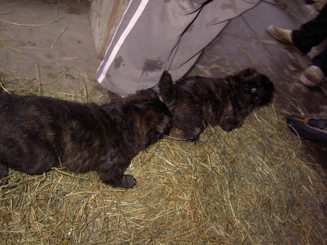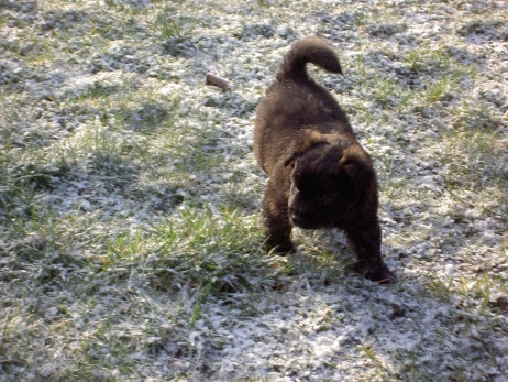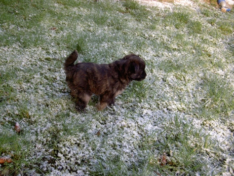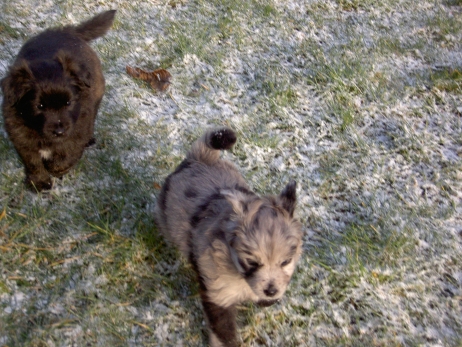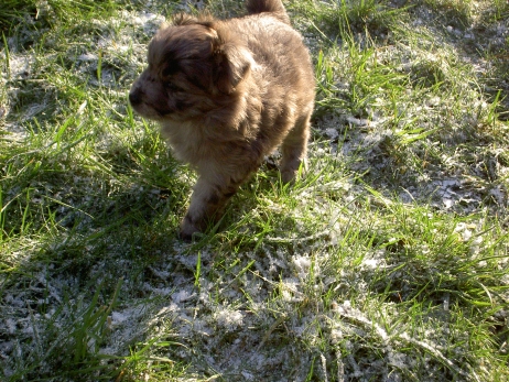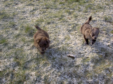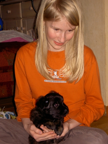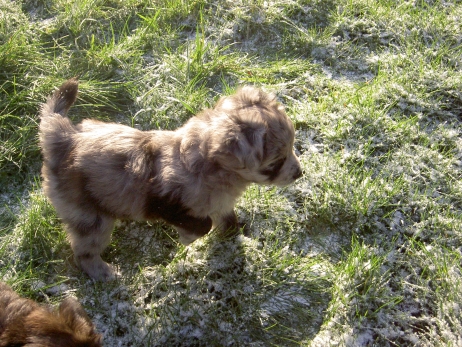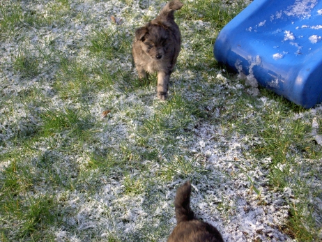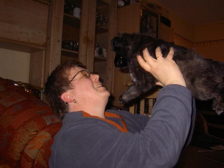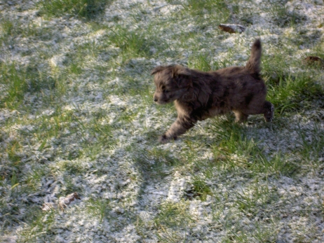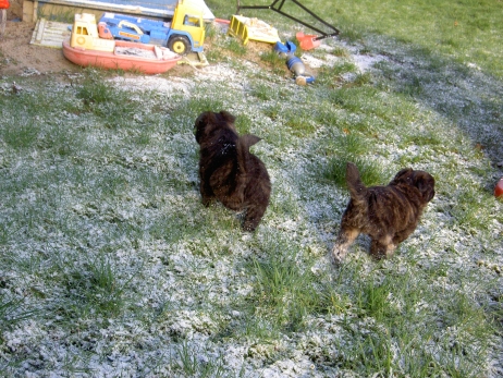 Drei Schneeflöckchen übereinander - ein echtes Erlebnis! Was ist denn hier los? Riecht aber gut! Kann mir das mal jemand erklären? Spannende Sache! Bißchen kalt vielleicht... Aldea und Anor an vorderster Front. Anor bevorzugt die "Ich mach dich platt"-Technik. Aber keine Sorge: Seine Schwestern überstehen es unbeschadet! Und auf zu neuen Taten! Unser Garten ist groß! Asea läßt sich durch nichts aufhalten! Was so ein echter Pyrenäen-Hütehund ist... Und ab im Galopp! Da fliegen die Ohren! Leider ist es für einen längeren Aufenthalt im Freien doch zu kalt, aber drinnen gibt's auch schöne Dinge. Und soooo lecker! Arda - der Terrier unter den Bergers! Katrin kuschelt fremd - aber Anor hat's gesehen! Lecker, so ein Rinderhuf! Und die beiden haben da was falsch verstanden - es heißt "Tunnel - durch", nicht "Tunnel - drauf"! Eigentlich wollte Asea nur in Ruhe ein Nickerchen halten. Aber es kann die Beste nicht in Ruhe leben... Dina hat auch alle Hände voll zu tun. Besuche bei uns sind nicht mehr so ganz ungefährlich, aber die Kleinen sollen ruhig schon lernen, daß sie nicht alles dürfen: Menschenfleisch ist tabu! Manchmal sind sie auch ganz lieb. Meistens, wenn sie schlafen. Noch ein Gute-Nacht Küßchen... schnarch... |