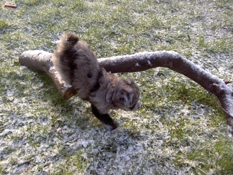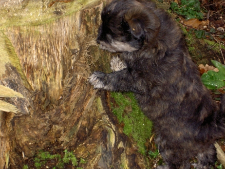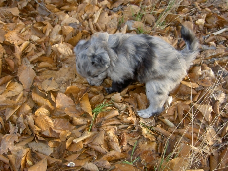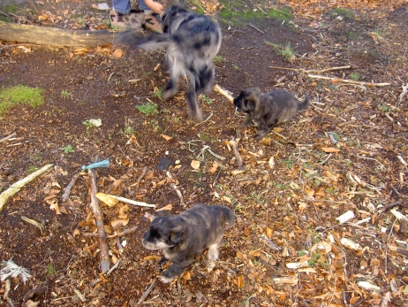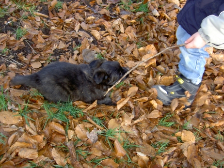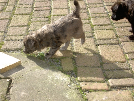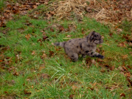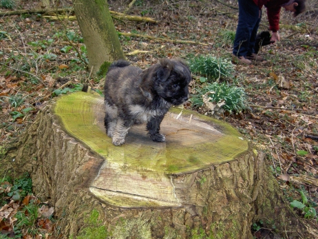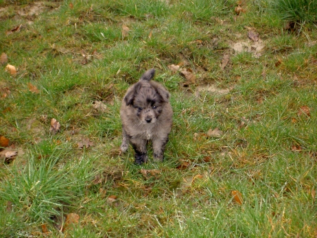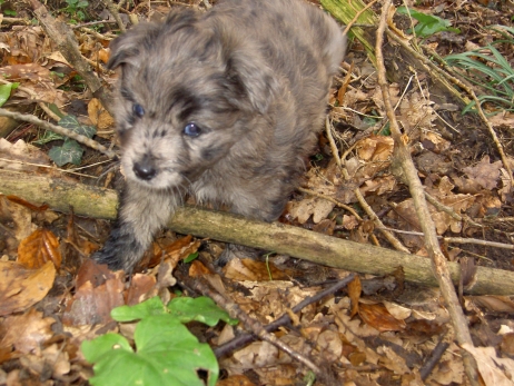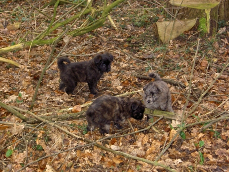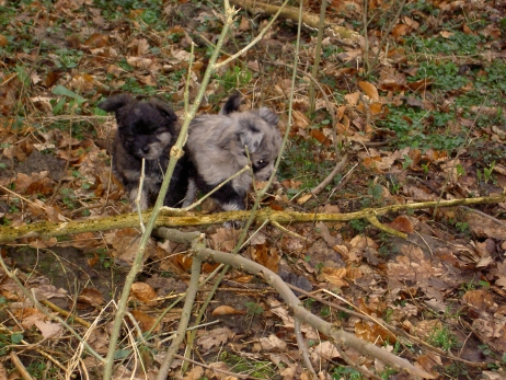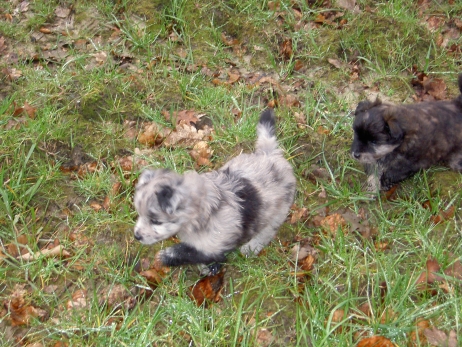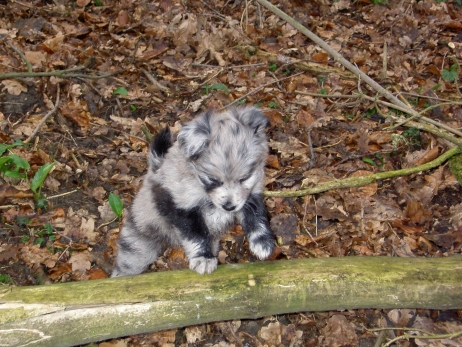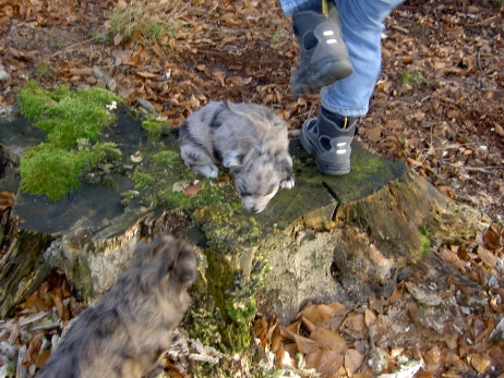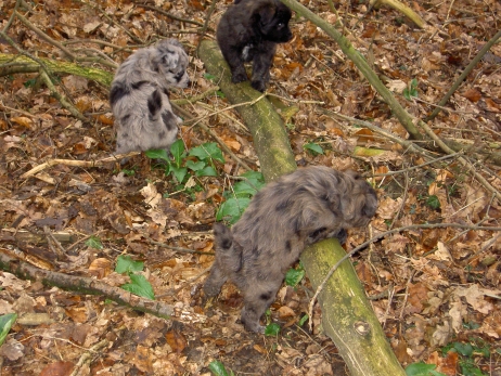 Was macht man mit Kindern bei schlechtem Wetter am Besten? Richtig - warme Sachen anziehen und ab nach draußen. Und was heißt das für uns? Ganz klar: Handtuch zum Trockenrubbeln einpacken, Welpen ins Auto und in den Wald. Vor lauter Toberei haben die Kleinen gar keine Zeit zum Frieren! Aldea zählt Jahresringe und trainiert nebenbei ihre motorischen Fähigkeiten - vom Selbstbewußtsein ganz zu schweigen! Guck mal, wie grooooß ich schon bin! Na ja, so groß nun auch nicht... Anor denkt erst noch mal drüber nach. Also - für's Agility muß das aber noch ein bißchen eleganter werden! Und eine neue Erfahrung: Wenn man nicht oben rüber kommt, dann vielleicht unten drunter her - oder außen rum. Da muß es ganz besonders toll sein. Oder doch lieber auf der anderen Seite? Über Stock und Stein... ...so ein Berger gibt nicht so schnell auf, und Arda schon mal gar nicht. Und ab im Galopp! Da fehlt doch eine! Ach, da ist sie ja. Wie - ins Auto???? Wir sind doch noch gar nicht fertig!!!! Vis á vis: Pia und Anor. Wenn das Caspar wüßte! Der würde garantiert mit auf dem Schoß sitzen! Wo zwei Harlekine hinpassen, ist auch noch Platz für einen dritten! Aldea hat das Schwein erlegt. Und was hat Asea mit Arda gemacht? Ach so, nur gekuschelt! Anor sieht schon richtig dynamisch aus, wie er da aus den Bällen hechtet! Tja, Arda, dynamisch ist das jetzt ja nun nicht gerade. Das kann der Bruder wohl besser... Aber so ein unschuldiges Gesicht will auch geübt sein. |