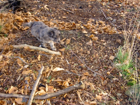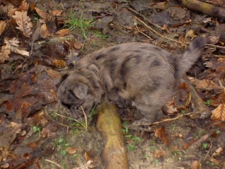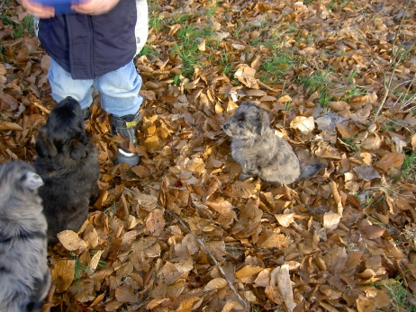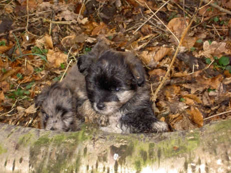 Wald. Unsere erste Reise in den Zauberwald. Es ist kalt. Die Blätter rascheln. Es riecht nach.. nach.. nach.. WALD. Dies ist ein Wald. Es riecht nach.. nach.. Hase, Baum und Bach und Reh und Moos und Luft und Schnee und Eis und Himmel und so frisch und riecht und riecht und ist das toll und wir riechen die Welt, unsere Welt, unser Wald, wir lieben den Wald, er ist so waldig, wir wollen alle Waldi sein. Unser Freund, der Baum. Lasst uns alle Baumfreunde sein. Unser Freund, das Bein. Lasst uns alle Beinfreunde sein. Du sei mein Freund und ich dein Begleiter. Die Welt ist gross und ich bin klein, alle Düfte sind jetzt mein. So viel Wald. Wieder zuhause zu sein ist zum ins Gitter beissen, Decke zerfetzen, Reifen aufreissen! Aber auch hier, welch wunderbarer Duft Fang ihn ein. Und jetzt träum ich das ganze noch einmal... Gute Nacht. Nur Arda hält Wacht. Übrigens: Eine von uns ist noch zu haben. Wenn du mit uns in den Wald gehen willst, um uns zu zeigen, was alles gut riecht... Schreib uns eine Mail. info@mourioche.de |